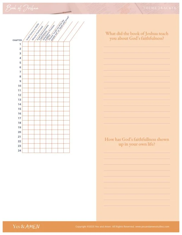 Next to the tracker, there are journal questions to complete after you have read the whole book of Joshua.