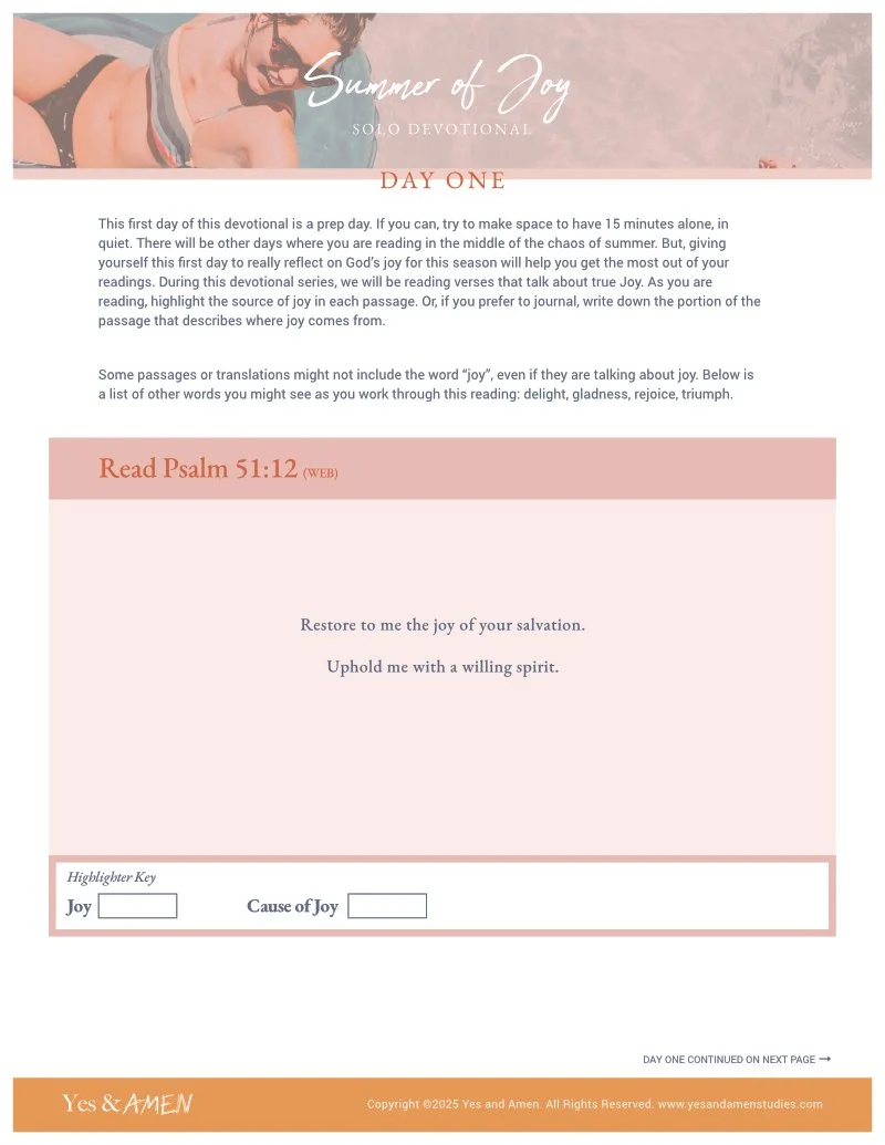 Below you will find a part two of a 20-day solo devotional plan. This Summer of Joy reading plan walks you through Bible passages that will teach you what true Joy in God looks like.