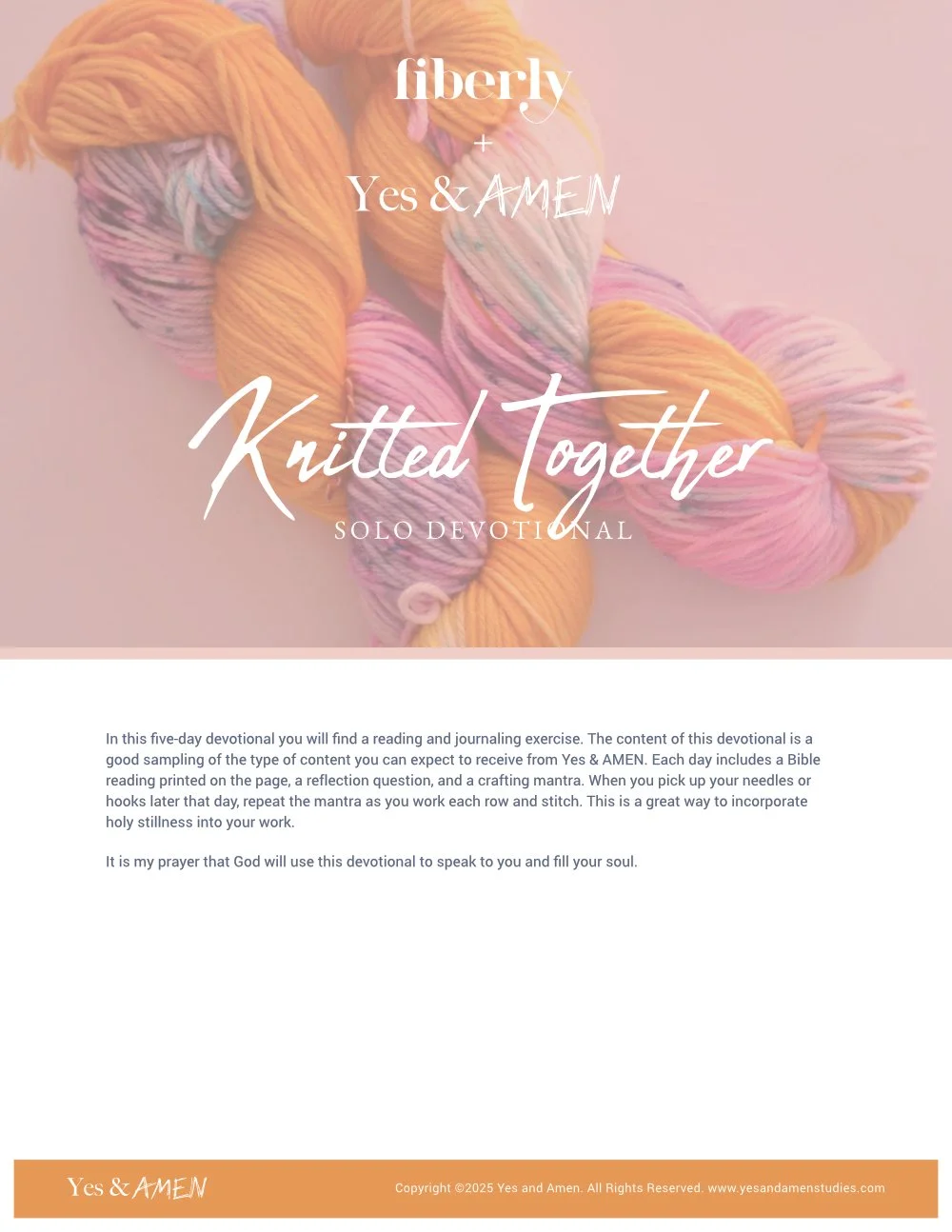 Click the button below to download your Knitted Together Devotional. This is a 5-day devotional written specifically for fiber loving crafters. I wrote this just for my Fiberly list. I hope it blesses you.